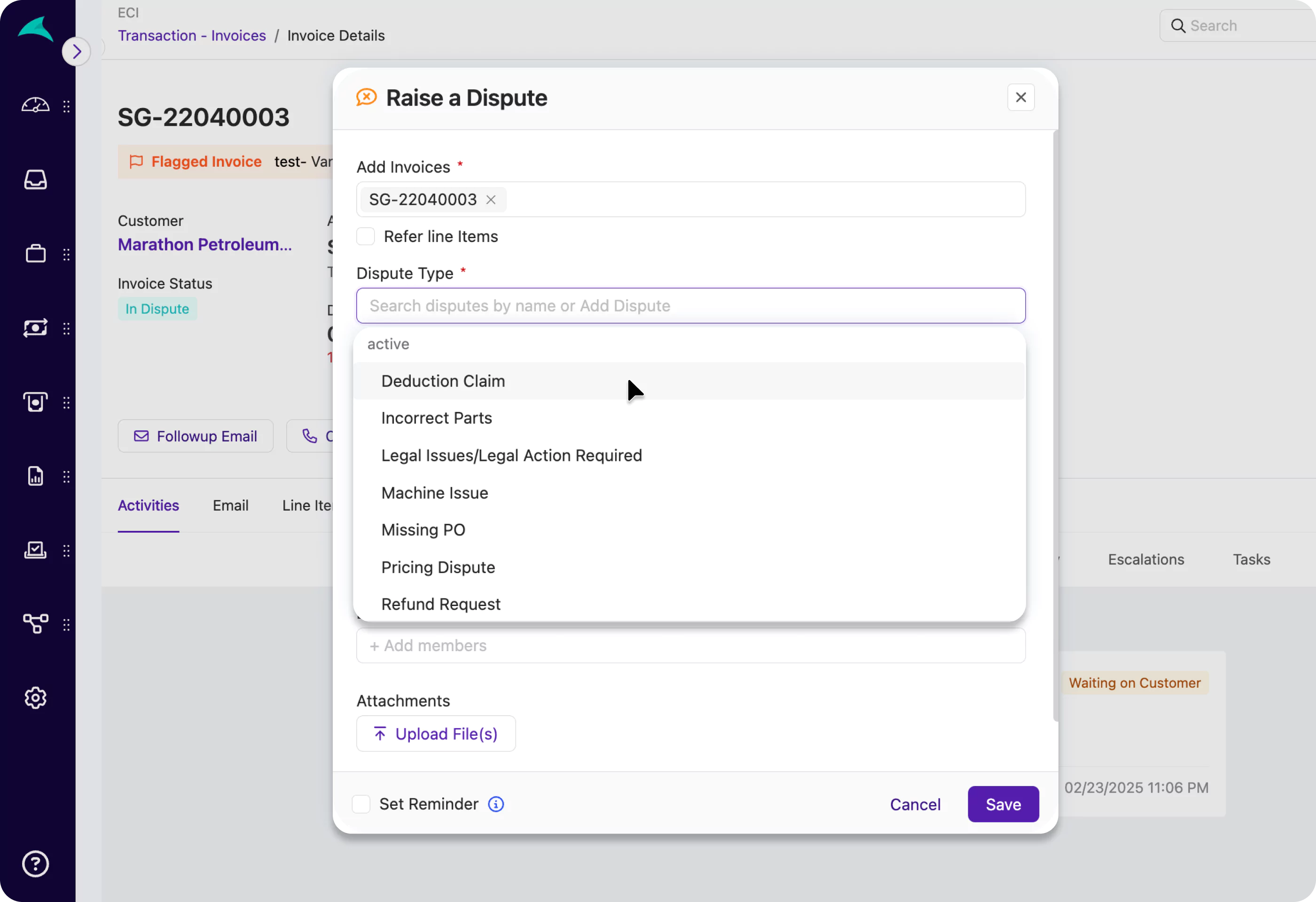 Evidence sits in inboxes, file shares, and someone’s memory. Each missing attachment adds days. Accounts receivable automation creates a single dispute record with reason codes, SLAs, and threaded documents so finance, sales, operations, and the customer work from the same facts. If you need a primer, point to the explainer on AR disputes and protecting relationships.