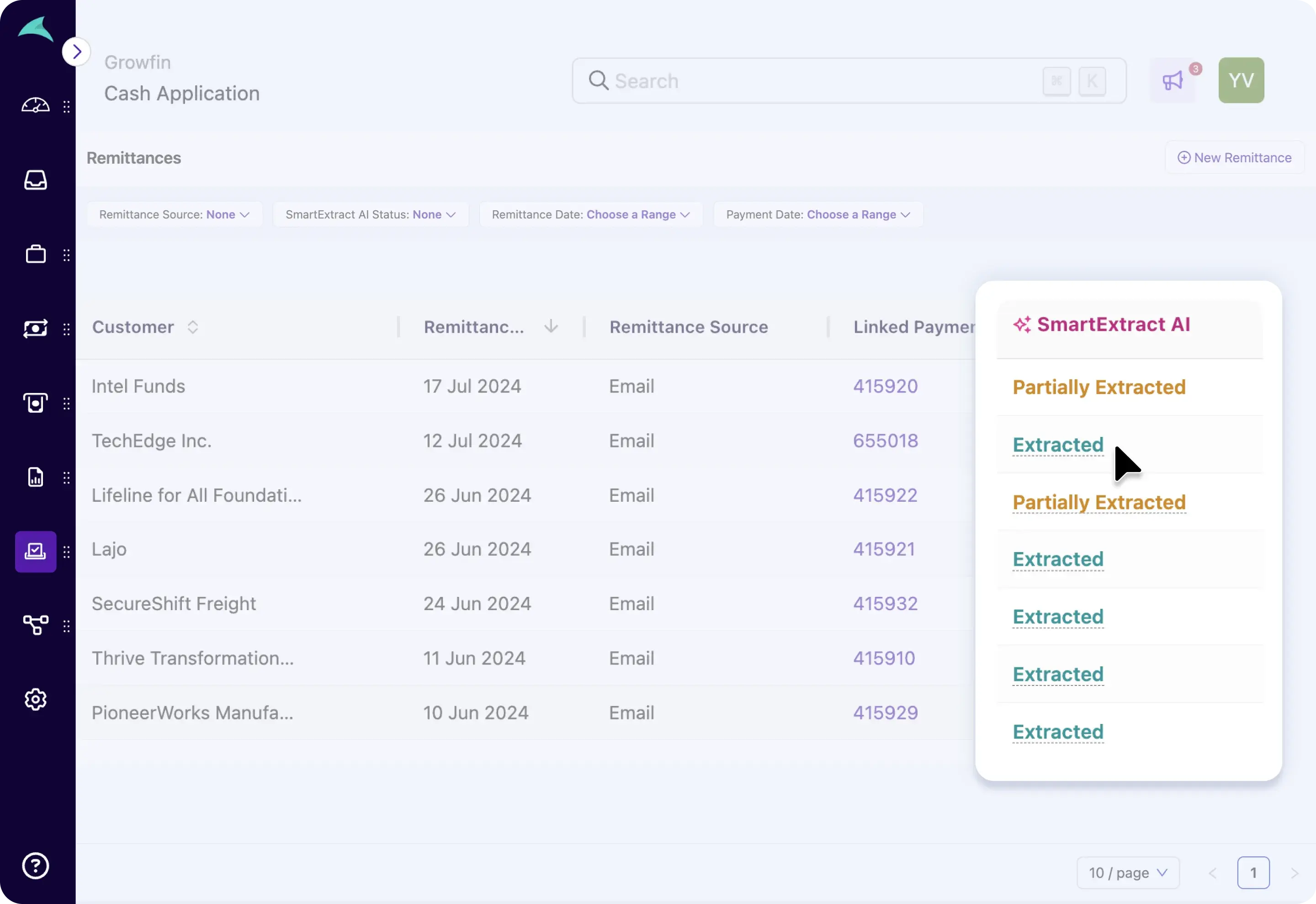 - Multi-source remittance capture from banks, emails, lockboxes, and files with automation to extract data across PDFs, CSVs, check images, and other semi-structured sources.