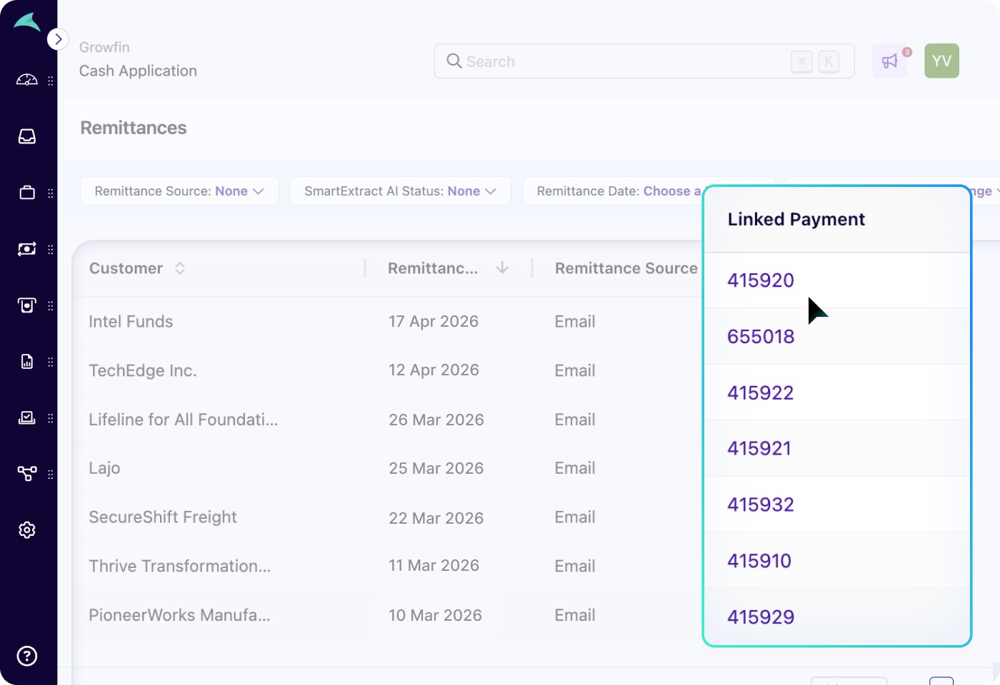 Growfin’s SmartExtract pulls remittance details from PDFs, Excel, lockboxes, portals, or emails - the instant they hit your inbox. Never chase, clean, or piece together messy remittance data again.